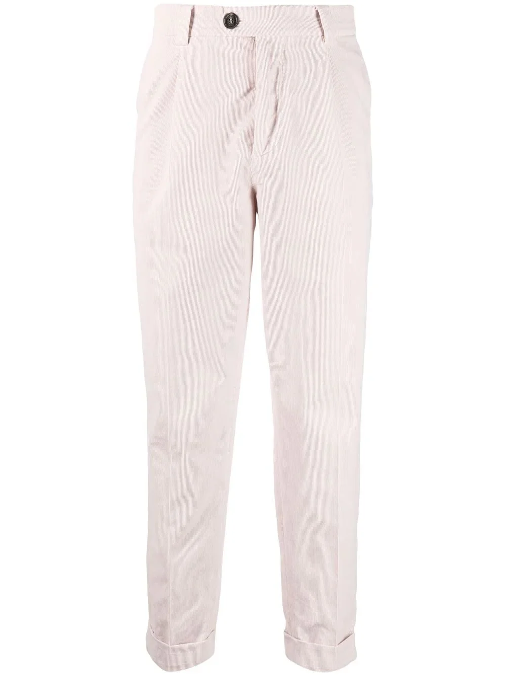 slim-fit corduroy trousers light pink cotton button fly fastening belt loops two side slit pockets two rear welt pockets Made in Italy Composition Lining: Cotton 100% Outer: Cotton 100% SIZE & FIT Model measurements Height 6 ft 2 in(1.89 m) Bust/Chest 37.79 in(96 cm) Hips 37 in(94 cm) Waist 29.92 in(76 cm) Washing instructions Machine Wash