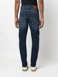 slim-fit denim jeans stretch-cotton indigo blue embroidered logo to the front front button fastening belt loops logo patch to the rear classic five pockets slim cut Made in Italy Composition Outer: Leather 100%, Cotton 98%, Elastane 2% Lining: Cotton 100% SIZE & FIT Model measurements Height 6 ft 2 in(1.87 m) Bust/Chest 36.22 in(92 cm) Hips 37 in(94 cm) Waist 27.95 in(71 cm) Washing instructions Machine Wash