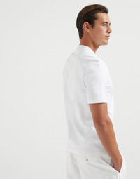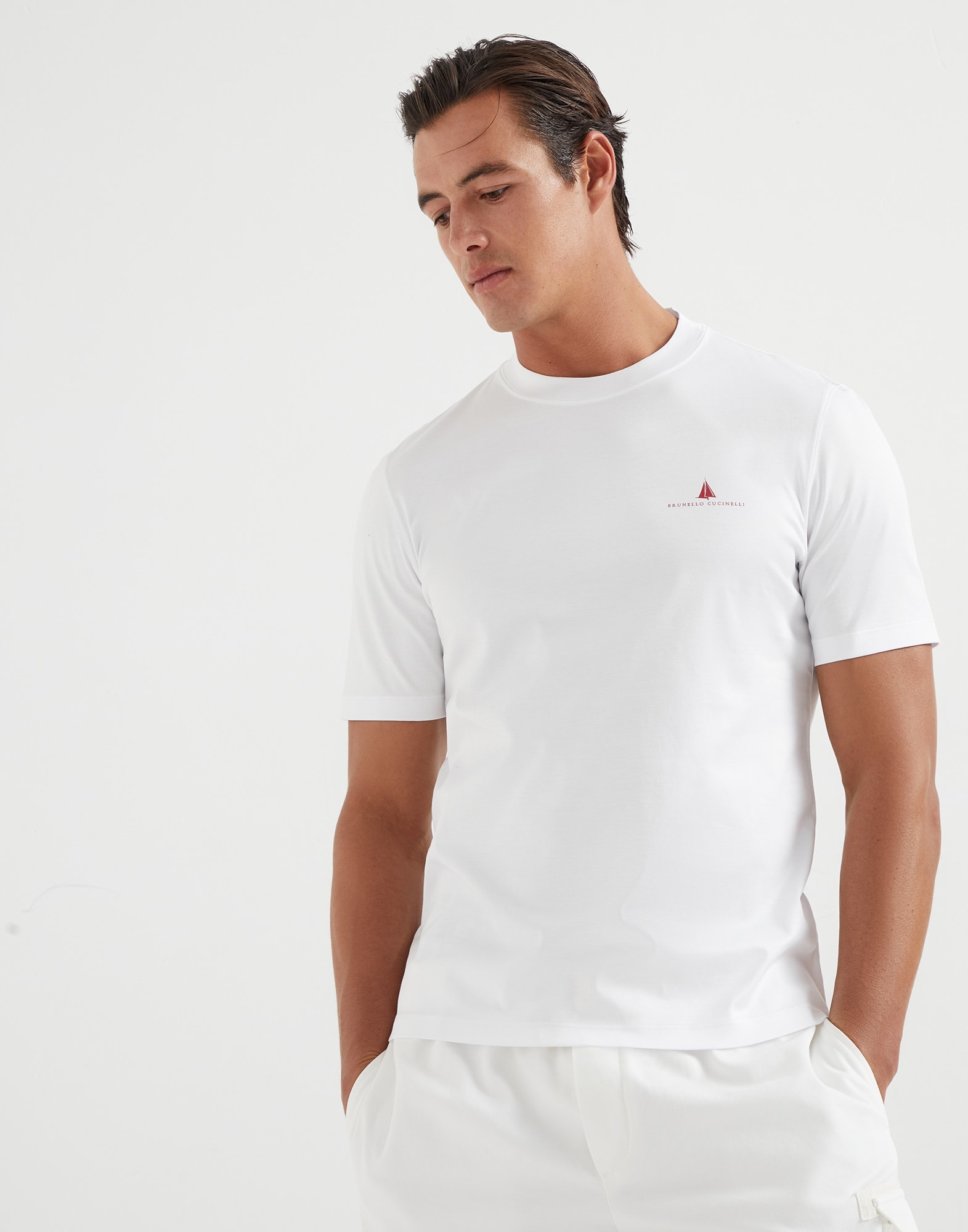 The quality of refined yarns and the season’s iconic details enrich the essential silhouette of this pure cotton jersey T-shirt. The fabric’s smooth, comfortable texture is enhanced thanks to an elegant detail: the graphic on the chest conveys nautical inspiration through the essential lines of a racing yacht. The fit features regular proportions throughout the torso. MATERIALS The exquisite quality of the natural cotton fibers enriches the soft jersey, a lightweight fabric with a smooth, fluid hand. DETAILS Crew-neck Sleeves with flat pressed hem Flat pressed hem Regular fit 100% COTTON