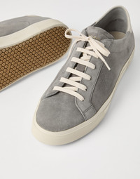 Retro inspiration is paired with the excellence of superior quality suede in these sneakers with a slender, tapered silhouette. With a round toe, the upper features a smooth, velvety texture, enhanced by the soft leather’s shimmering appearance. The particularly lightweight and unlined style is completed with a rubber bottom for a secure, comfortable fit. MATERIALS The lightweight suede is a refined leather with a thin, extremely soft texture. The leather and fabric lining, and the rubber bottom complete the footwear. DETAILS Flat fabric laces Leather lining Rubber outsole REAL LEATHER