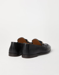The timeless elegance of the loafer is enriched with the excellence of Brunello Cucinelli materials and workmanship. The Soft waxed calfskin combines the particular smooth, silky texture of the leather with artisanal craftsmanship that adds polish and a slightly irregular, unique color. The upper’s tapered shape is enhanced with a metal horse-bit that completes the style of the footwear, which is perfect for the transitional months. MATERIALS The Soft calfskin is an extremely supple and lightweight leather with a silky texture similar to nubuck. It is then finished with a multi-stage process: first a transparent wax is applied, giving a polished appearance. Afterwards, finishing slightly darkens the color and makes it stand out with a subtle uneven appearance. The leather lining provides added comfort. DETAILS Leather lining TPU rubber tread REAL LEATHER