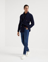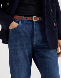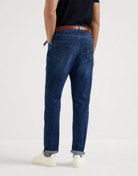 Refined 9.5 oz Japanese denim enriches the timeless style of the five-pocket trousers, an essential piece of the male wardrobe. A leisure fit offers comfortable and slightly soft proportions in the seat and remains close to the body down the leg. MATERIALS The pure cotton denim is characterized by a balanced weight that makes this garment comfortable to wear, particularly in warmer weather. DETAILS Metal button closure Front pockets with watch pocket Back patch pockets 18 cm (7,09") hem Leisure fit: the rise and seat are soft and the proportions of the leg are tapered 100% COTTON