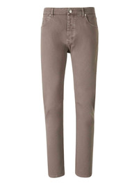 button fly jeans Highlights - Brown - Slanted front pockets - Patch back pockets - Button fly - Visible stitching - Straight hem Made in Italy Composition Cotton 98%, Elastane 2% Washing instructions Read Manufacturer Guidelines