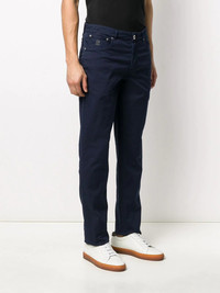 straight leg chinos Indigo blue stretch cotton straight leg chinos from Brunello Cucinelli featuring a waistband with belt loops, a button and zip fly, a five pocket design and a leather brand patch to the rear. Made in Italy Composition Outer: Cotton 97%, Spandex/Elastane 3% Lining: Cotton 100% SIZE & FIT Model measurements Height 6 ft 2 in(1.89 m) Bust/Chest 36.22 in(92 cm) Hips 37.79 in(96 cm) Waist 29.52 in(75 cm) FittingInformation This piece fits true to size. We recommend you get your regular size Cut for a slim fit Made with a mid-weight stretch fabric Washing instructions Machine Wash