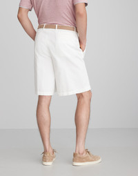 A sporty feel and comfortable fabrics define the style of these twisted cotton gabardine Bermuda shorts. Garment dyeing gives the season’s colors slight shading, while the regular proportions of the shorts complement its casual attitude. MATERIALS Pure cotton gabardine uses twisted threads that enhance the fabric’s compact, comfortable and fresh texture. Garment dyeing adds slight color shading that is visible in particular along the edges of the garment and seams. DETAILS Zip closure with button Back welt pockets Cotton lining 100% COTTON
