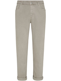 five-pocket jeans Highlights - Light grey - Concealed fly and button fastening - Logo patch to the rear Made in Italy Composition Cotton 99%, Elastane 1%