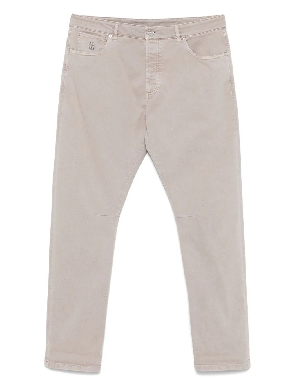 straight-leg jeans Highlights - Taupe grey - Concealed fly and button fastening - Classic five pockets - Belt loops - Logo patch to the rear Made in Italy Composition Outer: Calf Suede 100%, Cotton 99%, Elastane 1% Lining: Cotton 100%