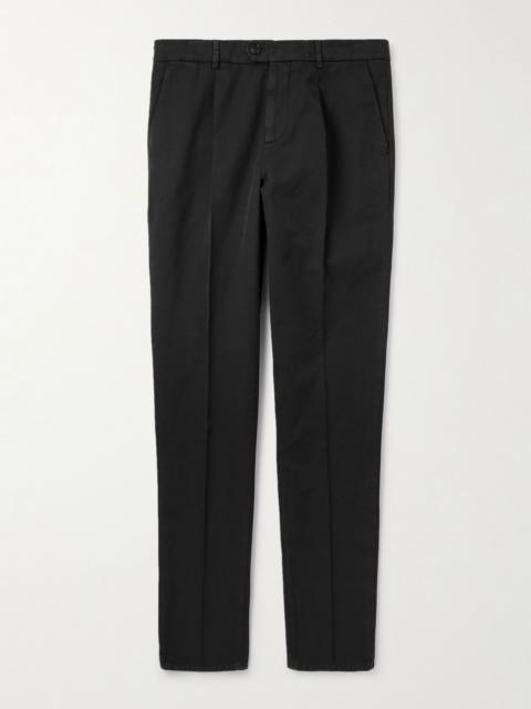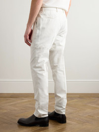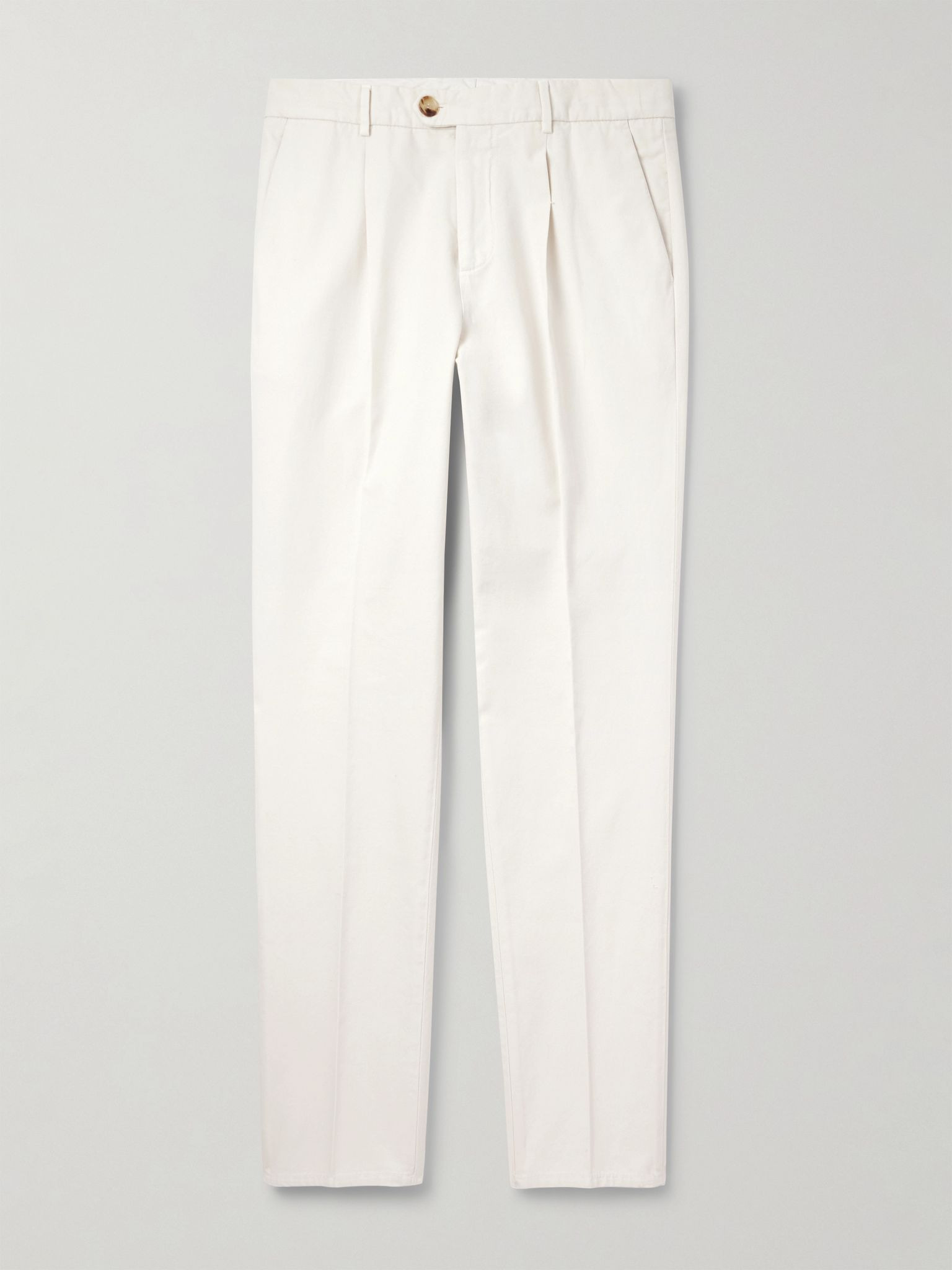 Straight-Leg Pleated Cotton-Twill Trousers White