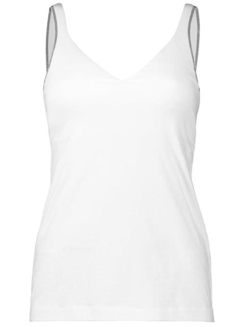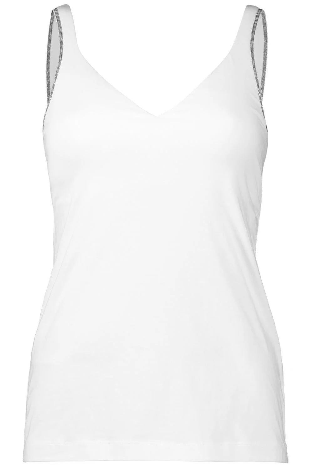 DETAILS AND INSIGHT Brunello Cucinelli stretch tank in white. Jersey Dry Clean Made in Italy Style MPT18BA702-C159