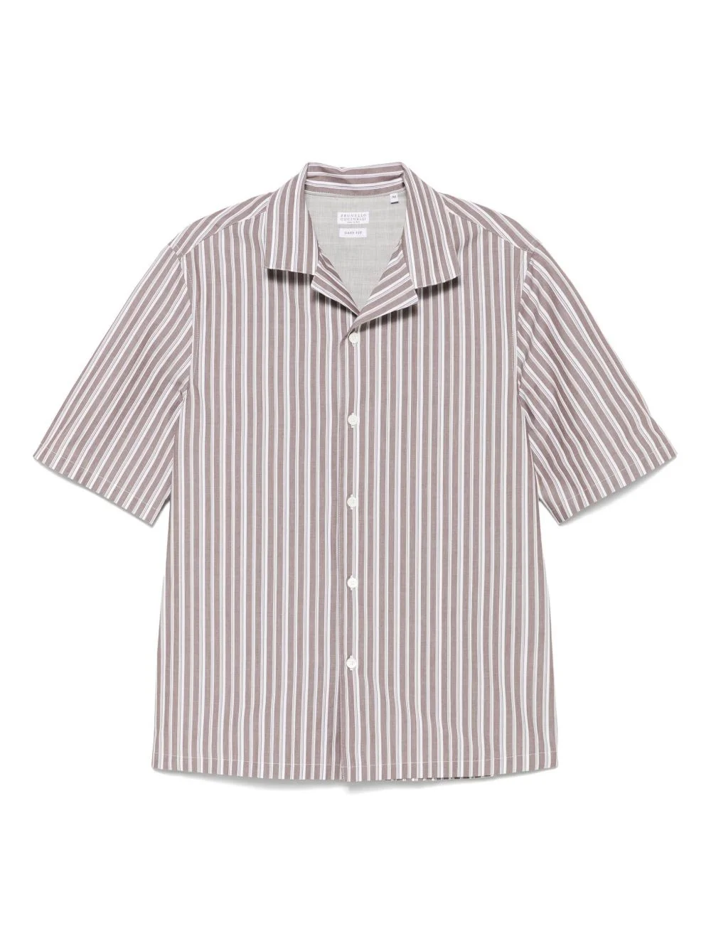 striped shirt Highlights - Taupe brown - Front button fastening - Cuban collar - Short sleeves - Short side slits Made in Italy Composition Cotton 100% SIZE & FIT Model measurements Height 6 ft 0 in(1.84 m) Bust/Chest 37.79 in(96 cm) Hips 37 in(94 cm) Waist 31.49 in(80 cm) FittingInformation Designed for a regular fit, allowing for a comfortably loose fit throughout the body Made from a midweight non-stretch fabric