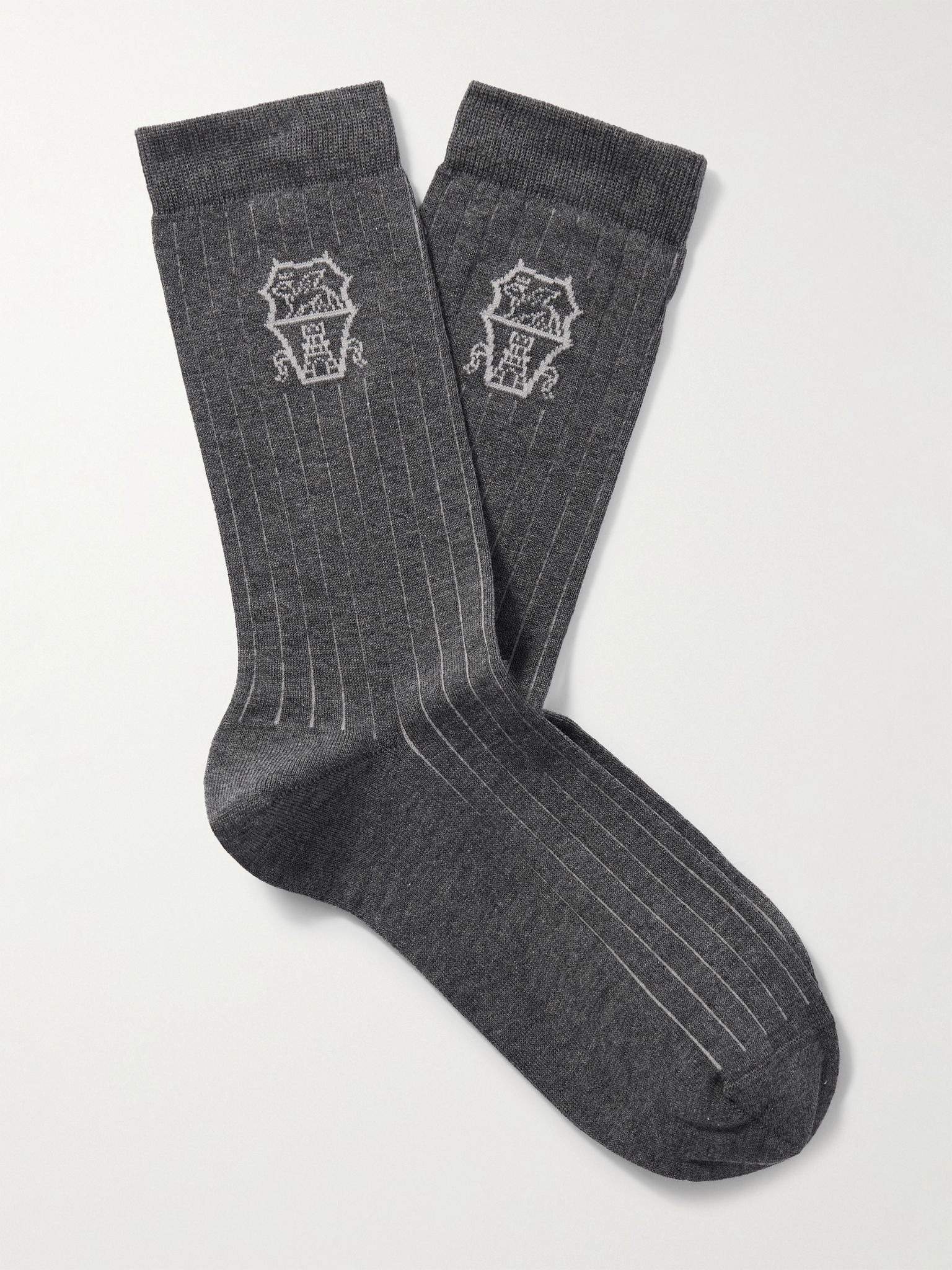 Striped Logo-Jacquard Cotton Socks Gray