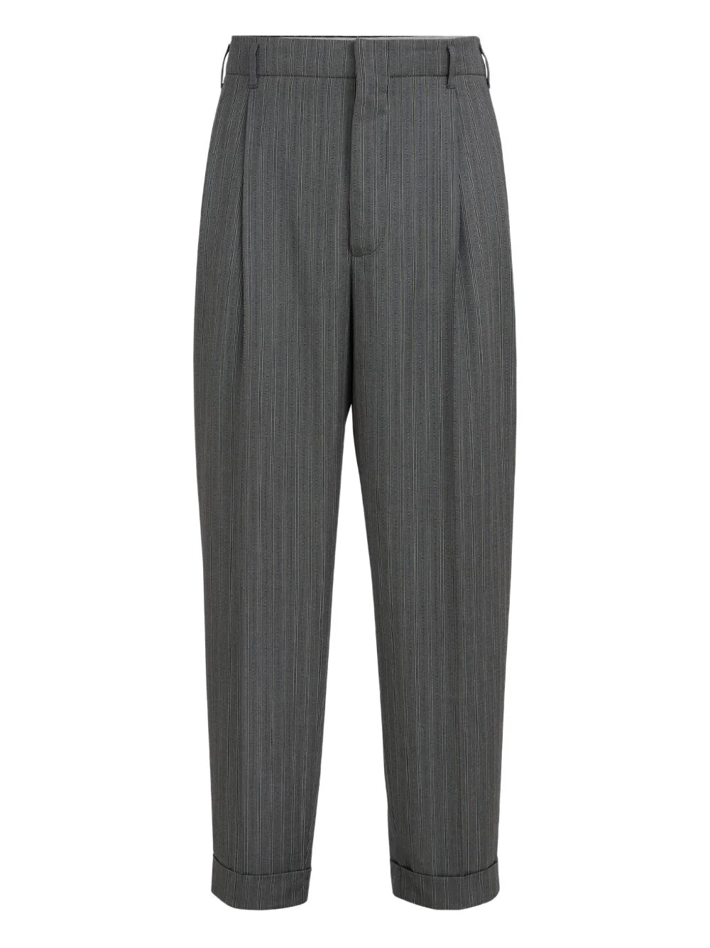 striped-pattern double-pleats trousers Highlights - Dark grey - Striped pattern - Double pleats - Belt loops - Turn-up hem Made in Italy Composition Virgin Wool 100% Washing instructions Read Manufacturer Guidelines