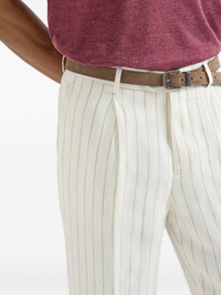 striped pleated trousers Highlights - White - Stripe pattern - Twill weave - Pleat - Turn-up hem - Belt loops Made in Italy Composition Outer: Linen/Flax 100% Lining: Cupro 100% Washing instructions Read Manufacturer Guidelines