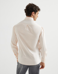 Striped poplin basic fit shirt with button-down collar