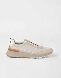 Refined Brunello Cucinelli materials elevate the Active style of these new sneakers. The velvety, slightly irregular look of washed suede is paired with semi-polished calfskin trim, enriching this style with a sophisticated texture contrast. The fine grooves on the back of the two-tone EVA outsole and on the TPU insert at the base of the heel counter complete the style of this footwear. MATERIALS Manufacturing of the refined washed suede involves hand-buffing that enriches the velvety texture with slightly irregular coloring. A leather lining completes the shoe. DETAILS Flat fabric laces Leather lining Detachable insole Sole in lightweight micro rubber REAL LEATHER