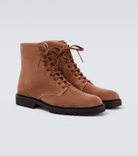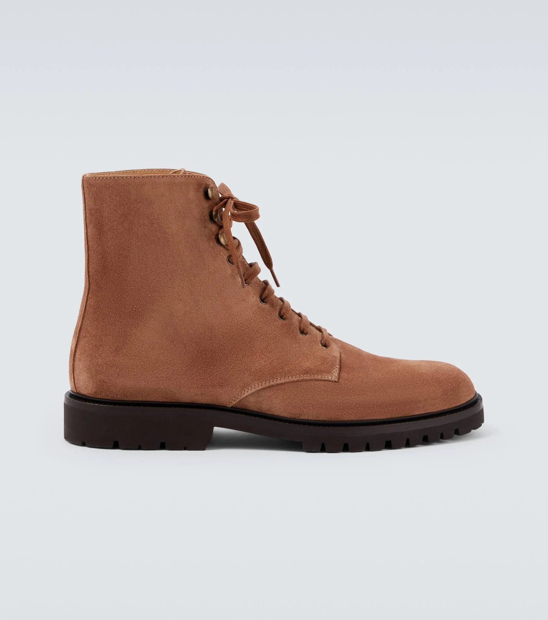 Brunello Cucinelli highlights exquisite Italian craftsmanship with these smooth suede ankle boots. Featuring a classic round toe and lace-up fastening, this sophisticated pair blends timeless style with refined elegance. Product Details - Upper: leather (suede) - Lining: leather - Sole: leather insole, rubber sole - Toe shape: round toe - Made in Italy - Includes: shoe box - Designer color name: C2692 - Item color: brown - Item number: P01056141 Size & Fit - Fits slightly small to size - we recommend trying a half size larger - European sizes