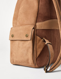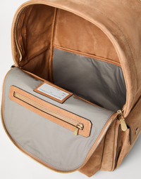 Versatile for moving around the city as well as for travel, this backpack combines a functional design and refined materials. The reversed calfskin combines a soft, suede texture with a timeless allure and a characteristic irregular look, enhancing the season's elegant colors. Two small magnetic closure side pockets and a front zipper pocket are showcased on the exterior, ensuring the essentials are always within reach. A strap on the back allows the bag to be attached to a trolley for easy transport. MATERIALS The reversed calfskin leather is characterized by a sueded look with a slightly uneven texture that is soft to the touch. DETAILS Zip closure Adjustable shoulder straps Handle Outside zipper pocket Side pockets with flap and snaps Water-resistant fabric lining Internal pocket with zip closure 3 open internal compartments Strap on back for attaching to trolley handle All metal parts are Nickel-free Accessory is approx. 31 cm (12.2") long, 43 cm (16.9") high, and 18 cm (7.1") wide REAL LEATHER