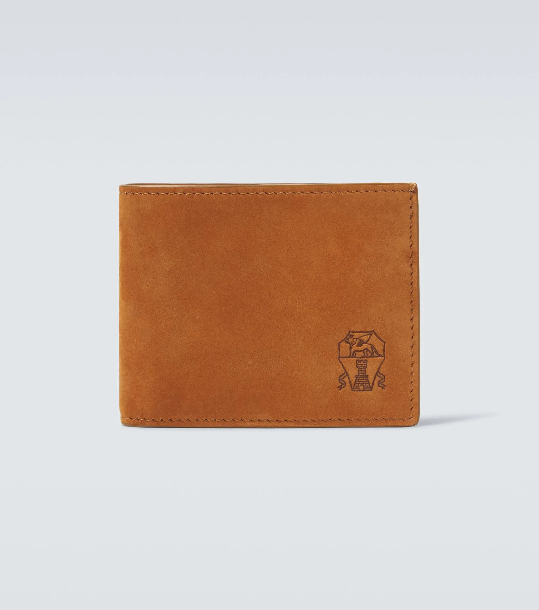 Sleek, minimalist, and functional accessories like this wallet from Brunello Cucinelli work to elevate the whole of your outfit. Made from supple suede, the bifold design has a subtle logo on the front. Product Details - Material: 100% calf leather - Care instructions: do not wash - Made in Italy - Designer color name: Cognac - Item color: brown - Item number: P01056103 Size & Fit - Height 9cm-3.5" - Width 11cm-4.5"