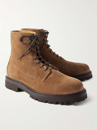 Brunello Cucinelli's footwear embodies traditional Italian craftsmanship. Inspired by classic hikers, these suede boots feature hooked eyelets for a secure fit and robust rubber-lug soles for superior traction. Wear yours with everything from jeans to tailored trousers. Size & Fit - Fits true to size. Take your normal size - European sizing Details & Care - Brown suede - Lace-up - Come with dust bags - This item has been imported
