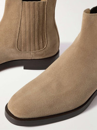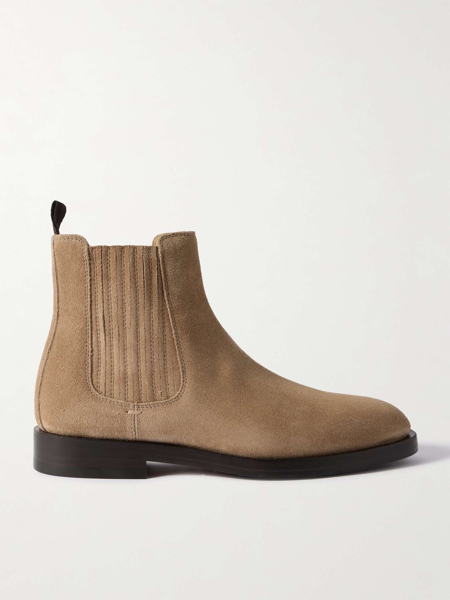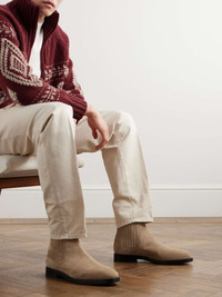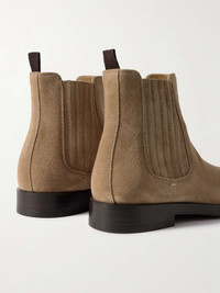 EXCLUSIVE AT MR PORTER. The epitome of Italian craftsmanship, Brunello Cucinelli's suede Chelsea boots are designed to stand the test of time. They're made with low, stacked heels and have flexible inserts that are covered for a clean, streamlined look. Size & Fit - Fits true to size. Take your normal size - European sizing Details & Care - Sand suede (Calf)
