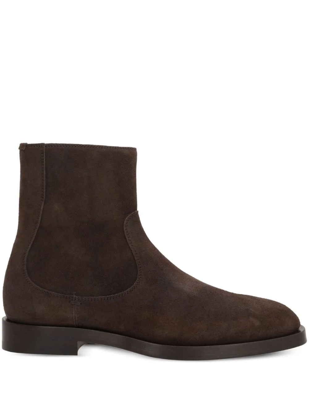 suede-leather ankle boots Highlights - Brown - Suede leather - Ankle height - Side zip fastening - Round toe - Flat heel Imported Composition Sole: Rubber 100% Outer: Calf Suede 100% Lining: Calf Leather 100%