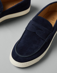The unmistakable style of the loafer inspires a modern reinterpretation of the sneaker. The casual yet elegant look of suede enhances this footwear’s classic shape, while its lightweight construction and natural latex outsole provide added comfort. MATERIALS The refined suede showcases an elegant natural light and dark effect that enriches the season’s colors. A leather lining and a natural latex bottom provide added comfort. DETAILS Leather lining Natural rubber outsole REAL LEATHER