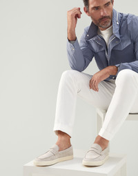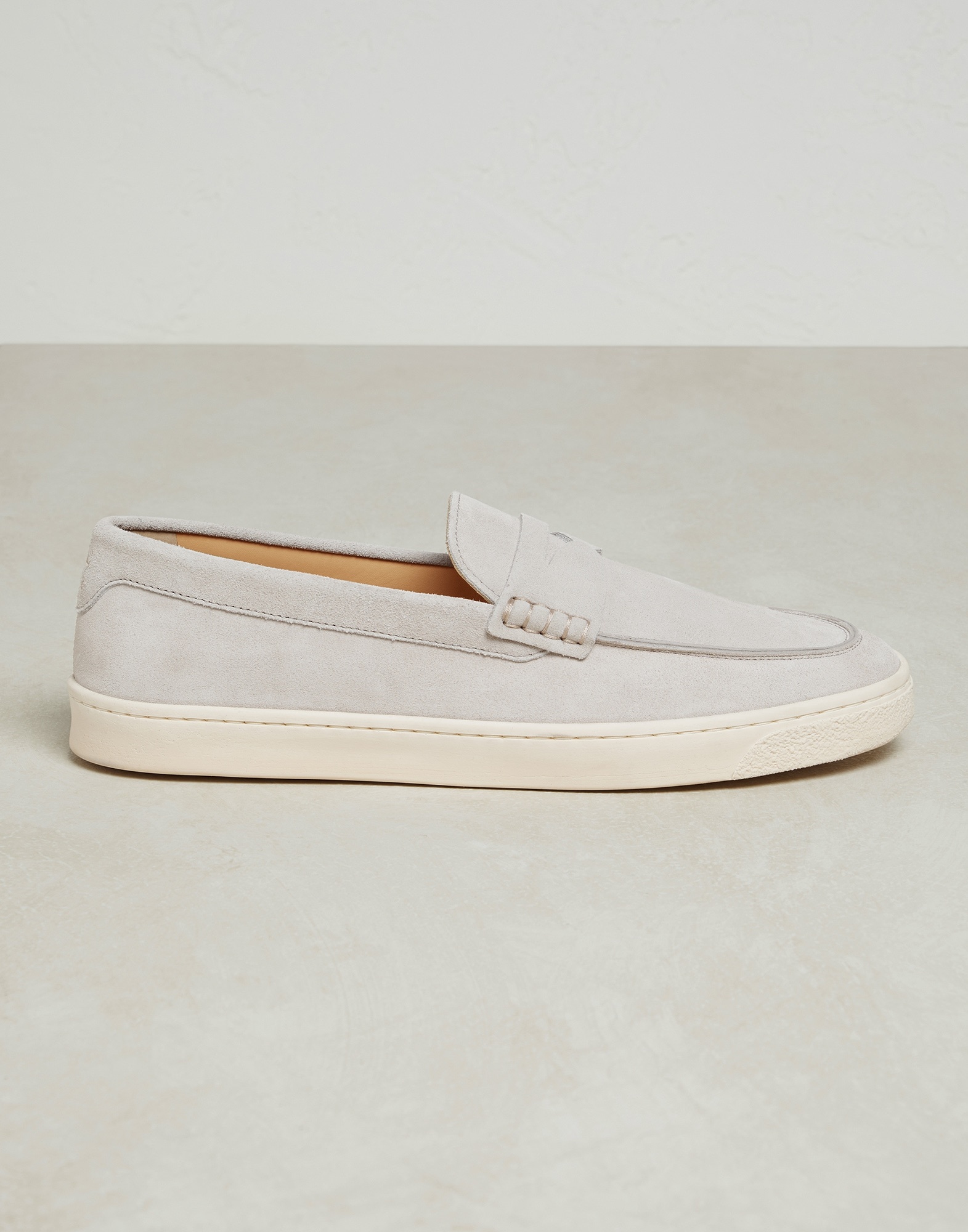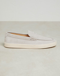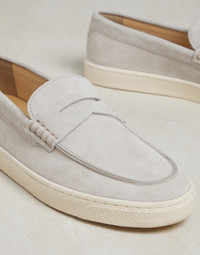 Washed suede loafer sneakers with natural rubber sole