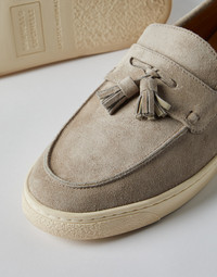 The unmistakable feel of loafers inspires a modern yet sophisticated reinterpretation of sneakers. The tassel detail, together with the footwear’s classic shape, is paired with a lightweight construction, characterized by a natural latex outsole. MATERIALS The refined suede is characterized by a classic velvety hand that enhances its casual feel. A leather lining and a natural latex bottom provide added comfort. DETAILS Leather lining Natural rubber outsole REAL LEATHER