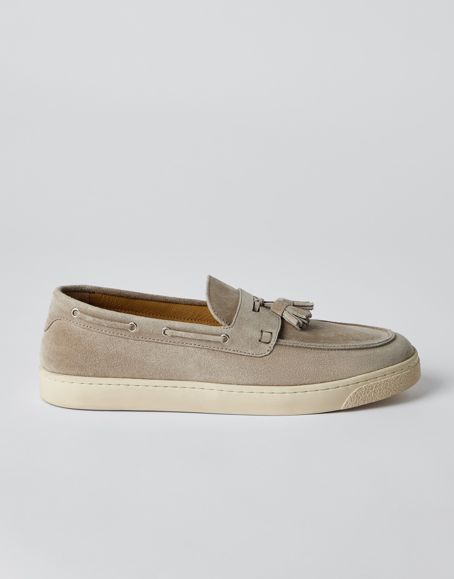Suede loafer sneakers with tassels and natural rubber sole