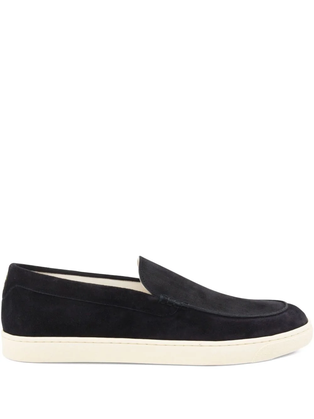 suede loafers Highlights - Navy blue - Suede - Round toe - Logo detail - Flat sole - Slip-on style Made in Italy Composition Outer: Suede 100% Lining: Leather 100% Sole: Rubber 100%