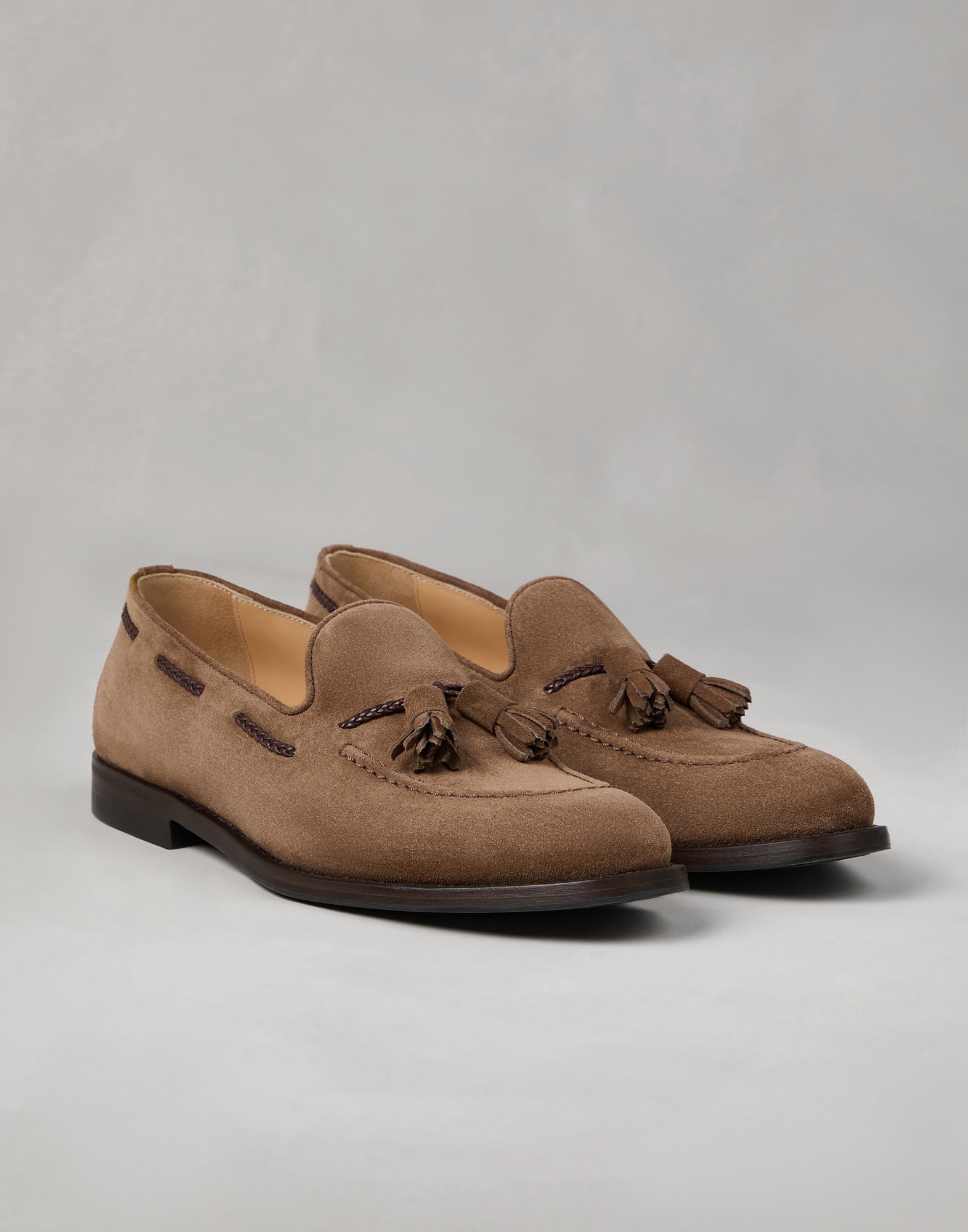 The timeless elegance of moccasins is enriched with the quality of Brunello Cucinelli materials. The smooth and velvety hand of suede enhances the casual style of the shoe complemented by the signature tassel detail. A leather and rubber sole provides added comfort when worn. MATERIALS The refined suede is characterized by a classic velvety hand that enhances its casual feel. A leather lining and a natural latex bottom provide added comfort. DETAILS Leather lining Leather sole TPU rubber tread REAL LEATHER