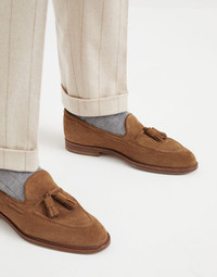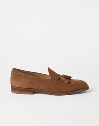 Comfort and refined materials define the timeless style of these tassel loafers. The distinct smooth, velvety texture of suede enhances the charm of this footwear with unmistakable personality, made comfortable with a thin leather outsole. MATERIALS The refined suede is characterized by a classic velvety hand that enhances its casual feel. The thin leather and rubber outsole provides added comfort. DETAILS Leather lining Leather sole TPU rubber tread REAL LEATHER