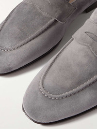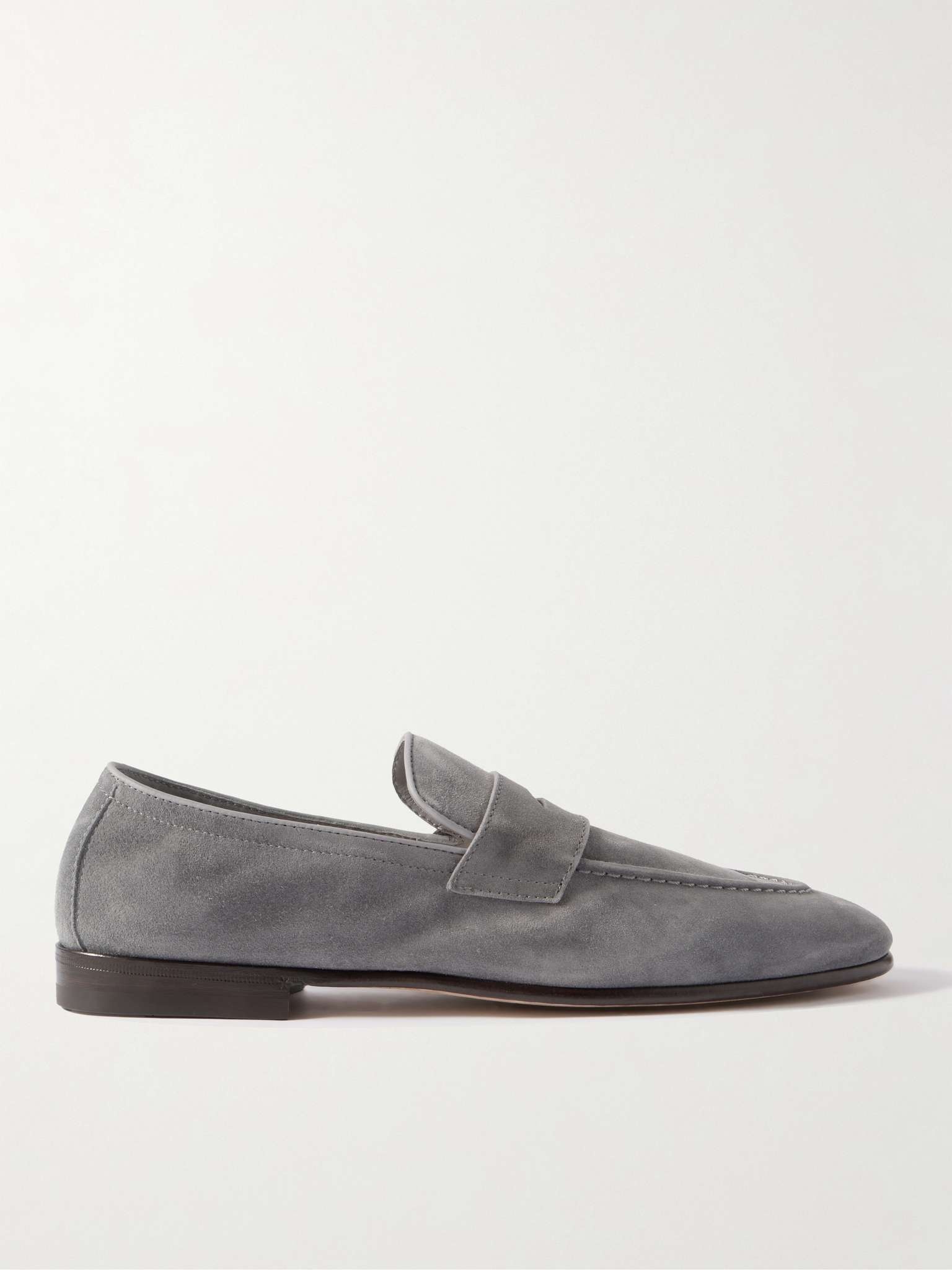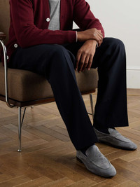 Brunello Cucinelli’s loafers have been crafted at the historic Solomeo workshop from supple suede in a refined grey. They’re complete with classic penny slots, a detail originally created in the '30s as a space to store change for the payphone. Size & Fit - Fits true to size. Take your normal size - European sizing Details & Care - Grey suede