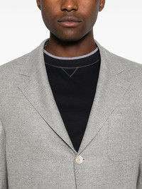 fine-ribbed blazer Highlights - Heather grey - Front button fastening - Three front patch pockets - Buttoned cuffs - Notched lapels Made in Italy Composition Outer: Wool 95%, Cashmere 3%, Silk 2% Lining: Cupro 100% SIZE & FIT Model measurements Height 6 ft 2 in(1.88 m) Bust/Chest 36.61 in(93 cm) Hips 35.82 in(91 cm) Waist 27.95 in(71 cm) FittingInformation Designed for a slim fit, offering a comfortable fit that sits just away from the body The vented hem offers movement at the rear Made from a midweight non-stretch fabric