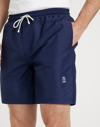 For travel or everyday lounging, this swimsuit is a must-have summer accessory. The season’s colors enhance the smooth, semi-matte lightweight nylon fabric. A waist drawstring and the pockets complete the style of the garment. The Solomeo logo detail adds a distinct touch. MATERIALS The synthetic fiber fabric is characterized by a smooth, slightly shimmering appearance. DETAILS Elastic waistband with drawstring Slanted front pockets Back pocket with hook-and-loop closure Swimsuit bag 100% POLYESTER