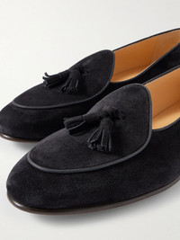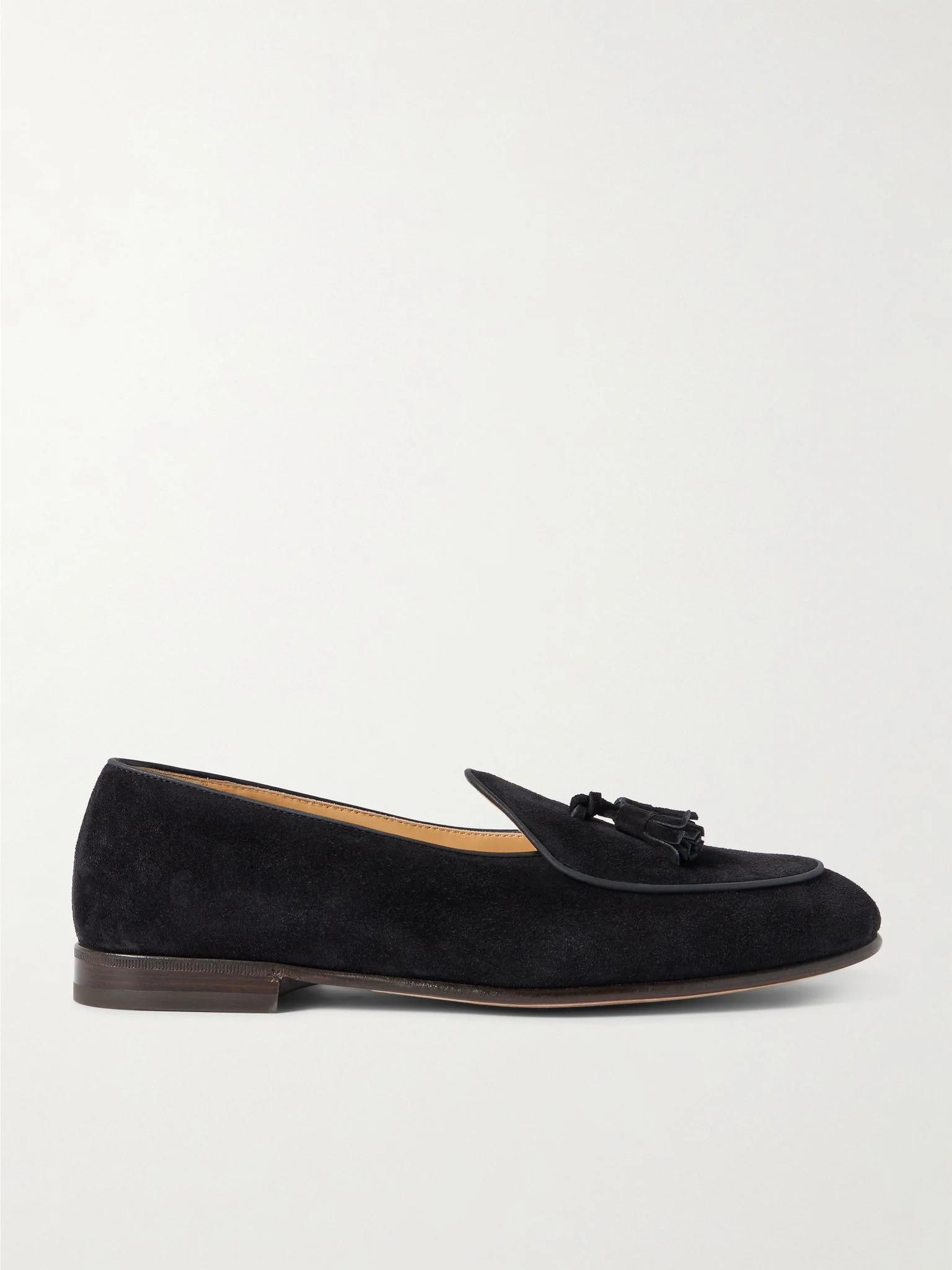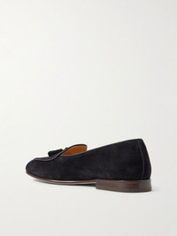 EXCLUSIVE AT MR PORTER. Inspired by traditional Belgian styles, Brunello Cucinelli's loafers are traced with smart leather trims outlining the tasselled vamp. They've been made in Solomeo, Italy, from suede that will only get softer over time and have TPU-treaded heels for traction and durability. Size & Fit - Fits true to size. Take your normal size - European sizing Details & Care - Black suede (Goat) and leather