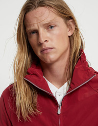 Functional, sophisticated, and contemporary, this unlined jacket in water-resistant microfiber is enriched with unmistakable design details. Lightweight and smooth to the touch, the technical material ensures protection from the elements, together with the extractable hood, adjustable hem and heat-sealed taped seams, a particular technique that provides the garment with added resistance and durability. The silhouette features soft proportions and a short cut, making it suitable for use in the city as well. MATERIALS A refined Japanese fabric, microfiber uses a polyamide thread wrapped in another made of polyester. A special process gives the surface a slight shimmering effect and a velvety texture, which is very fluid and pleasant to touch. Lastly, a finish helps to protect the fabric from light water contact. DETAILS Two-way zip closure Collar may be worn raised Pull-out hood Hand pockets with flap and button Elastic cuffs Drawstring hem Unlined 70% POLYESTER, 30% NYLON