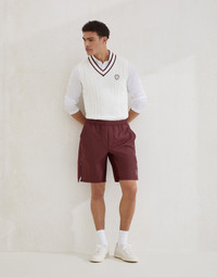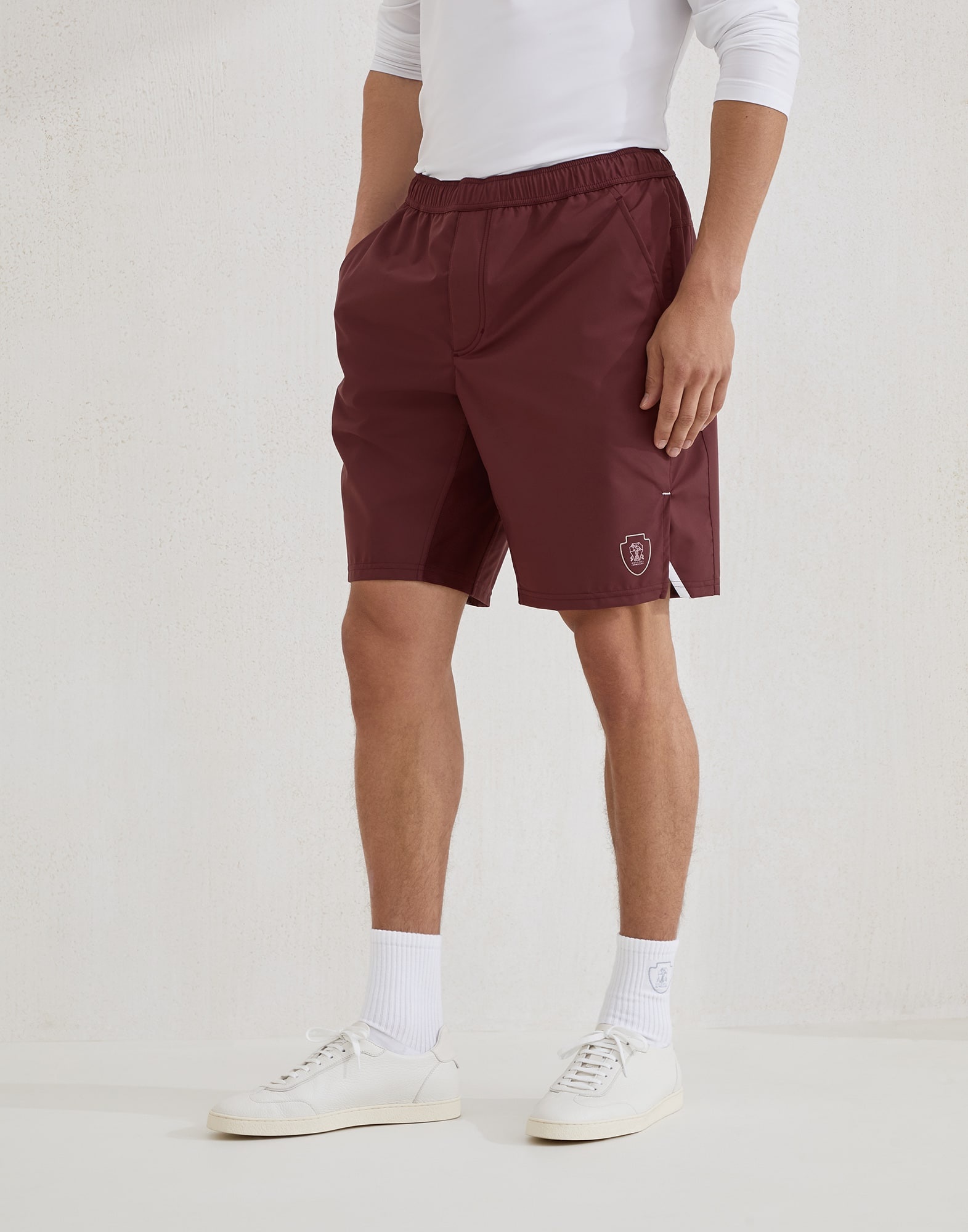 The sporty yet elegant feel of the world of Tennis inspires a selection of creations that enrich the Menswear collection. The classic, essential style of these nylon Bermuda shorts is paired with the functional characteristics of the fabric and casual details such as the elastic waistband for an elegant mix of inspiration. The regular silhouette is completed by the iconic logo detail. MATERIALS Nylon is a light, versatile material: glossy with a slightly crisp hand, it is ideal to wear during the transitional seasons. DETAILS Elastic waistband with drawstring Slanted front pockets Back welt pocket with button Bottom with vents 93% POLYESTER, 7% POLYURETHANE