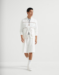 Refined materials enrich the sporty style of the Travelwear line, dedicated to moments of relaxation and leisure. Showcasing soft, relaxed lines, these knee length drawstring Bermuda shorts are delivered in techno cotton French terry and are enriched by its distinctive texture contrast: smooth and compact on the outside and soft on the inside against the skin. The garment is characterized by the edging detail along the entire silhouette, paired with a comfortable fit. MATERIALS Techno cotton French terry is a soft and lightweight fabric: the exterior texture is smooth and compact, while the interior offers a honeycomb structure which helps to make it comfortable when worn. A small percentage of synthetic fiber provides added comfort. DETAILS Rib knit waistband with drawstring Vertical front pockets Back welt pockets with button 95% COTTON, 5% NYLON