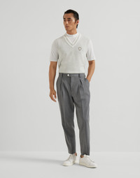The excellence of Brunello Cucinelli materials is paired with the natural sophistication of the world of Golf in this techno pique T-shirt, delivered in a casual way. Perfect for days on the move, the fabric is lightweight and fresh with all the refinement of the distinctive honeycomb texture. The silhouette is completed by the mock neck and offers regular, comfortable proportions. MATERIALS A skillful blend of techno fibers, the pique fabric is lightweight and high-performance but defined by the refined feel of the honeycomb texture. DETAILS Funnel neck Sleeves with flat pressed hem Flat pressed hem 50% NYLON, 45% POLYESTER, 5% ELASTANE