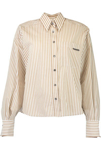 DETAILS AND INSIGHT Brunello Cucinelli techno stripe flap detail blouse in white/beige. Cotton Gauze Dry Clean Made in Italy Style MP789NB216-C209