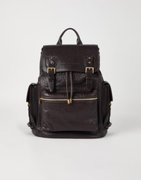 Perfect for daily appointments, this city backpack stands out for its sporty attitude, combined with refined materials and workmanship. The particular irregular, grained surface of the textured calfskin leather is achieved through careful artisanal workmanship and hand finishes with unique details, harmoniously offset by the metal components. With its numerous external pockets and balanced proportions, it is a practical and functional accessory. MATERIALS The calfskin leather is crafted with a special technique that defines the surface with a raised, uniform geometric texture reminiscent of a basketball. Handmade finishing creates light and dark effects that enhance the refined appearance of the accessory, which is lined with water-resistant fabric to protect the contents from possible contact with water. DETAILS Flap closure with adjustable straps Adjustable shoulder straps Handle Outside zipper pocket Side pockets with flap Internal pocket with zip closure Strap on back for attaching to trolley handle All metal parts are Nickel-free Accessory is approx. 36 cm (14.17") long, 45 cm (17.72") high, and 22 cm (8.66") wide REAL LEATHER
