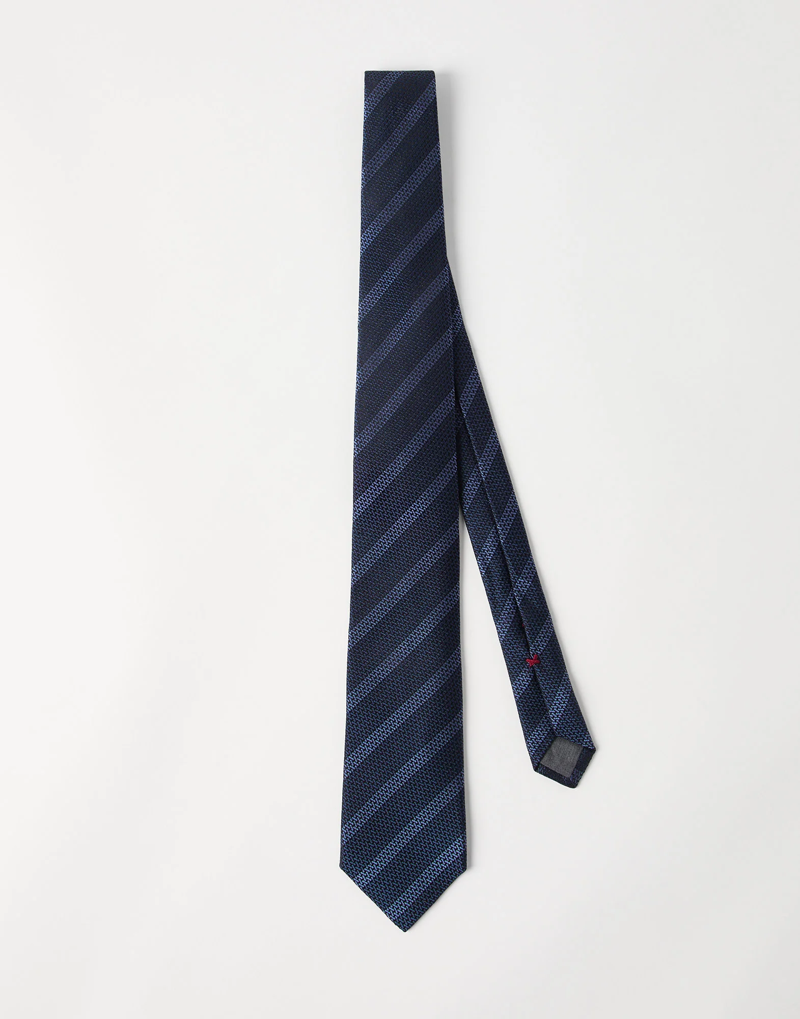 Refined materials and workmanship define the elegant allure of this textured pure silk tie, a must-have formal wear accessory. A slightly raised stripe pattern runs across the fabric’s smooth surface, providing depth and a dynamic effect. MATERIALS A slightly raised design defines the texture of the silk tie. The cotton lining competes the accessory. DETAILS Maximum width approx. 7.5 cm (2.95") Length approx. 147 cm (57.87") 100% SILK