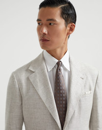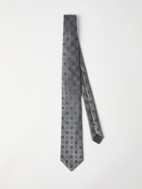 This necktie is enriched with the excellence of Brunello Cucinelli materials, delivered in smooth, glossy pure silk enriched with a classic check pattern in the season's colors. The cotton lining competes the accessory. MATERIALS A timeless accessory, this elegant necktie is perfect for completing looks with a personal touch. DETAILS The maximum width is about 7.5 cm (3") The length measures about 147 cm (57.9") 100% SILK