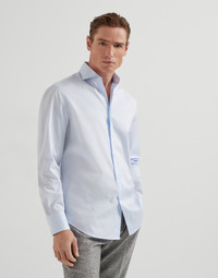 Refined Brunello Cucinelli materials enrich this twill spread collar shirt, an essential piece for completing this season’s outfits with a sophisticated touch. Its basic fit offers regular proportions that descend straight through the torso. MATERIALS Dyed in the season’s colors, the pure cotton twill is a lightweight, comfortable fabric that is perfect to wear year-round. DETAILS Placket closure with mother of pearl buttons Spread collar Cuffs have two mother of pearl buttons Basic-fit 100% COTTON