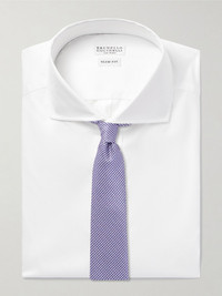 Slim-Fit Cutaway-Collar Cotton-Twill Shirt White