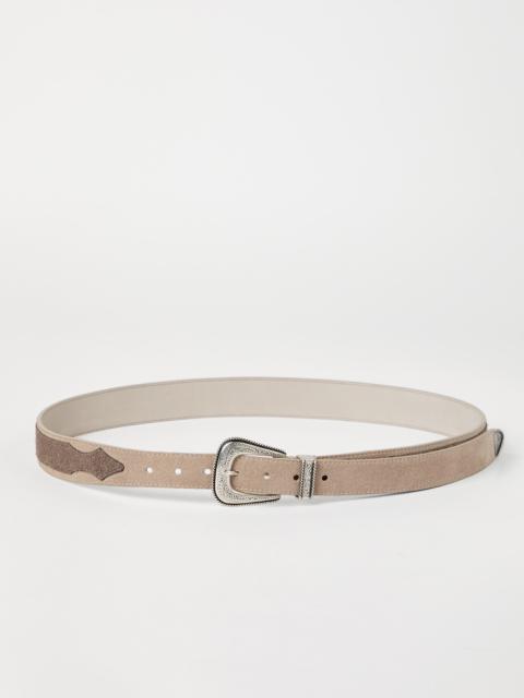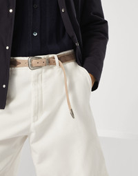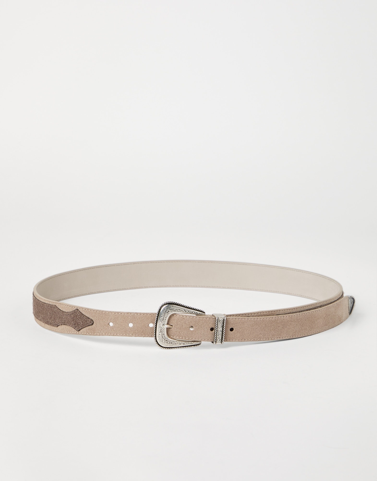 The excellence of materials and workmanship give a distinct personality to this two-tone belt in reversed calfskin. The leather’s characteristic, irregular texture is skillfully balanced by the detailed buckle and metal tip. MATERIALS Reversed calfskin is a leather with a sueded look and a slightly uneven texture that is soft to the touch. DETAILS Belt height approx. 2.5 cm (0,98") All metal parts are Nickel-free REAL LEATHER
