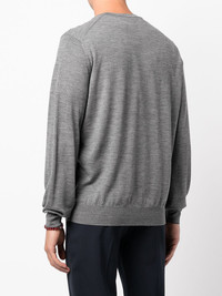 V-neck wool-cashmere jumper grey virgin wool-cashmere blend fine knit V-neck long sleeves ribbed cuffs ribbed hem Made in United States Composition Virgin Wool 90%, Cashmere 10% SIZE & FIT Model measurements Height 6 ft 2 in(1.88 m) Bust/Chest 38.18 in(97 cm) Hips 37 in(94 cm) Waist 29.92 in(76 cm) Washing instructions Hand Wash