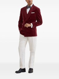 velvet blazer Highlights - Burgundy - Double-breasted button fastening - Buttoned cuffs - Chest welt pocket - English rear vents Made in Italy Composition Cotton 62%, Silk 38% Washing instructions Specialist Cleaning