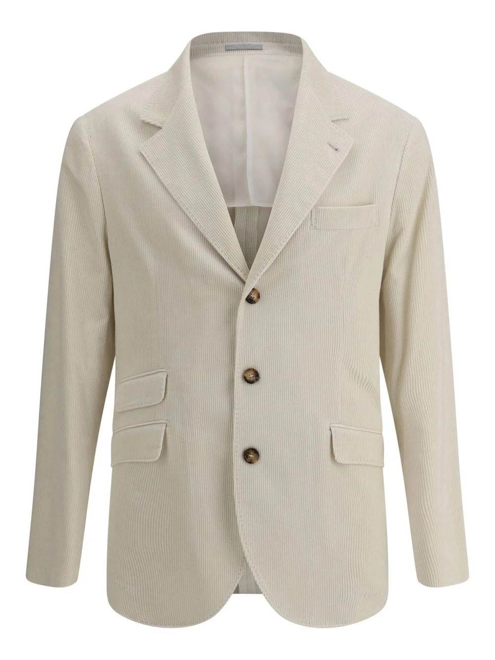 ribbed velvet blazer Highlights - Off-white - Ribbed velvet - Three-button fastening - Welt pocket - Flap pockets - Back vent Made in Italy Composition Cotton 91%, Cashmere 8%, Elastane 1% Washing instructions Read Manufacturer Guidelines